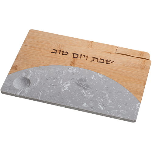 מגש חלה מהודר מעץ במבוק עם שיש וסכין 3045 ס"מ