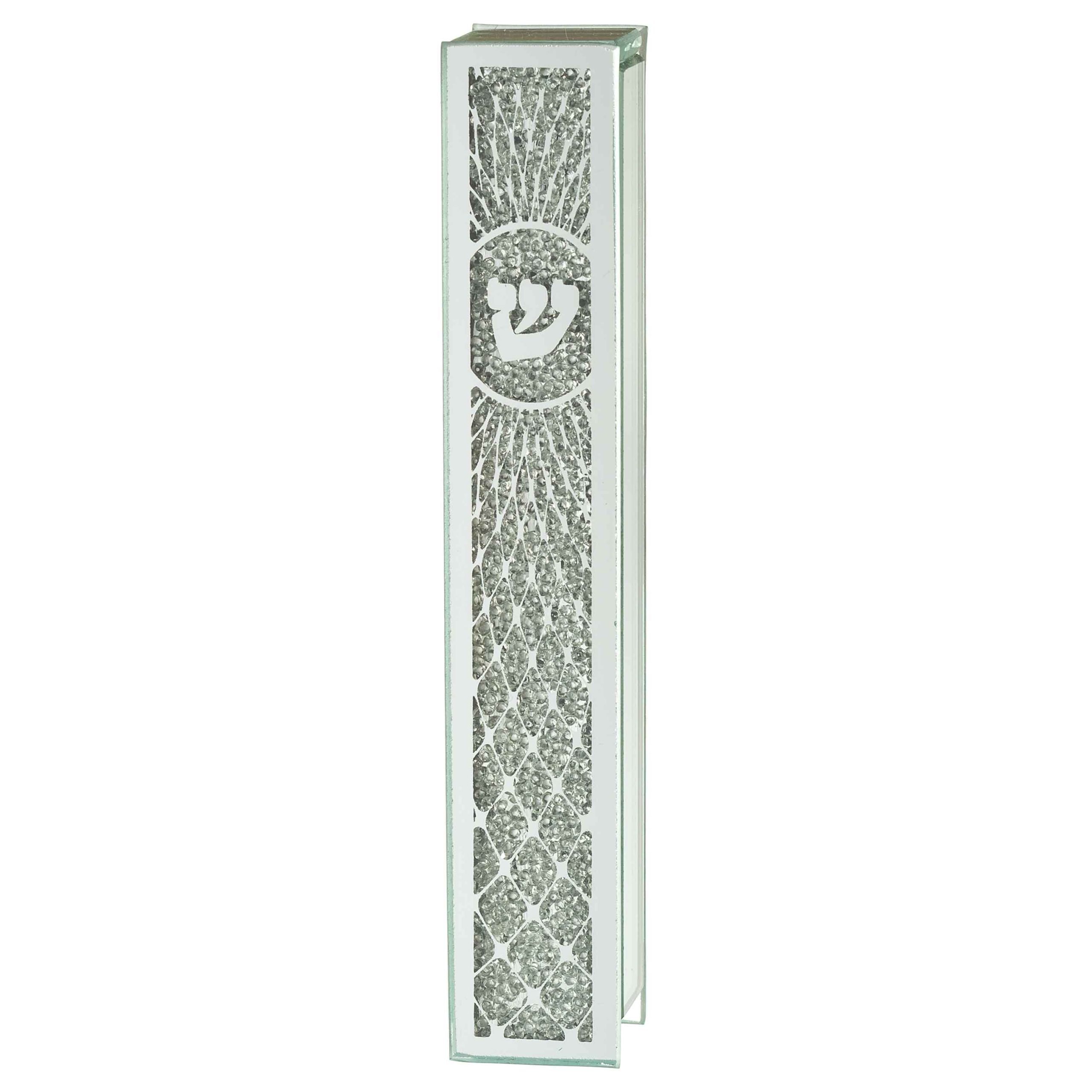 Glass Mezuzah 12 cm- Mirror with Stones עמיד לגשם, מגיע עם דבק דו צדדי