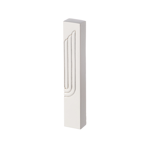 White Polyresin Mezuzah 12 cm- Silver "Shin" עמיד לגשם, מגיע עם דבק דו צדדי