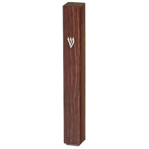 מזוזה פלסטיק גוון עץ 12 ס"מ "ש" כסף עם פקק גומי