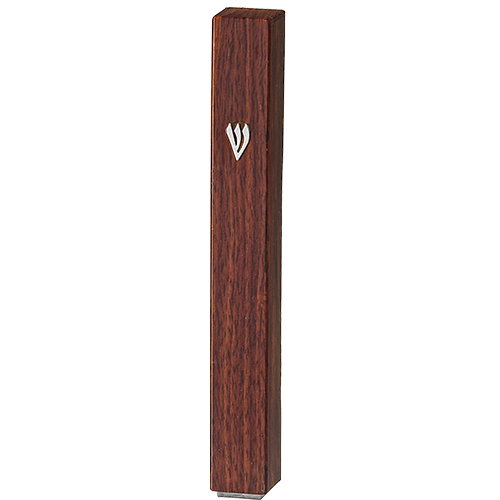 מזוזה פלסטיק גוון עץ 15 ס"מ "ש" כסף עם פקק גומי