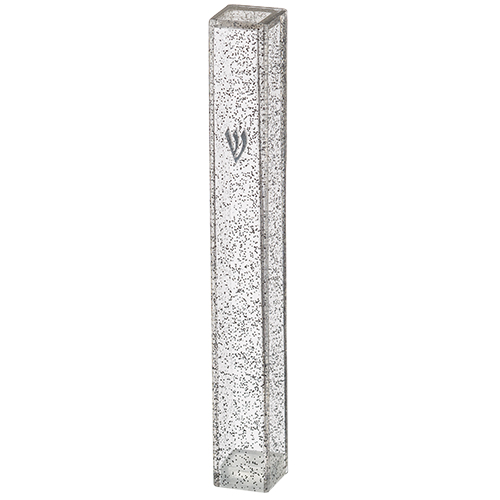 [ מזוזה פלסטיק כסף כהה מנוקד 10 ס"מ "ש" כסף עם פקק גומי