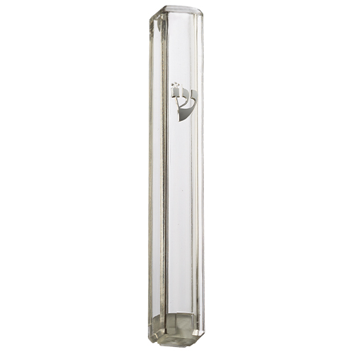 מזוזה פלסטיק לבנה ש' כסף גודל 12 ס"מ פקק גומי
