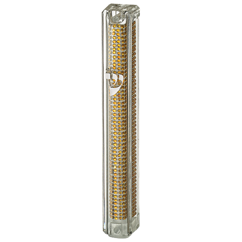 Plastic Glitter Transparent Mezuzah with Rubber Cork 20 cm- with the Letter Shin אטום למים, מגיע עם דבק דו צדדי