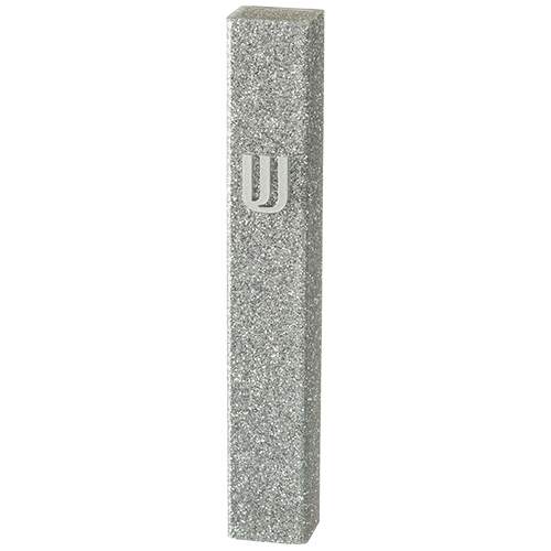 [ מזוזה פרספקס נצנץ כסף עם ש מפרספקס 12 ס"מ