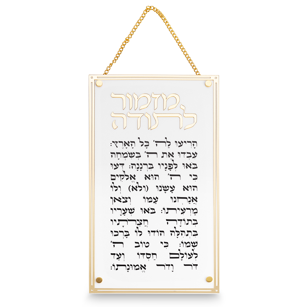מזמור לתודה מלבן אקריליק מסגרת זהב