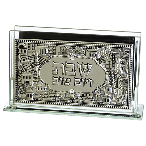 מחזיק גפרורים זכוכית עם פלקטה "הדלקת נרות" עיטור ירושלים