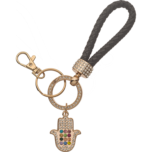 מחזיק מפתחות זהב עם לולאה חמסה ושיבוץ אבנים