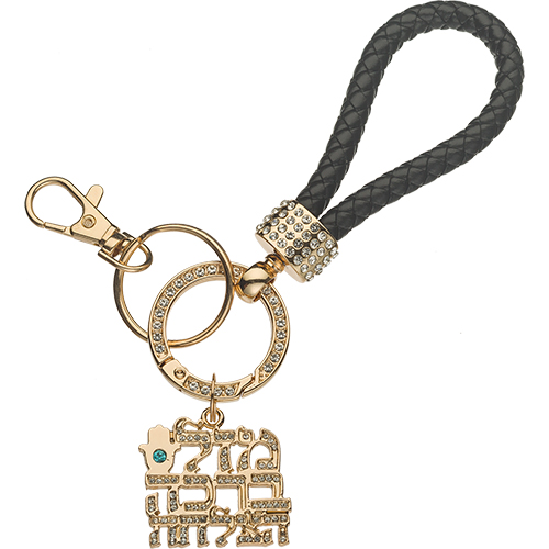 מחזיק מפתחות זהב עם לולאה מזל ברכה והצלחה ושיבוץ אבנים