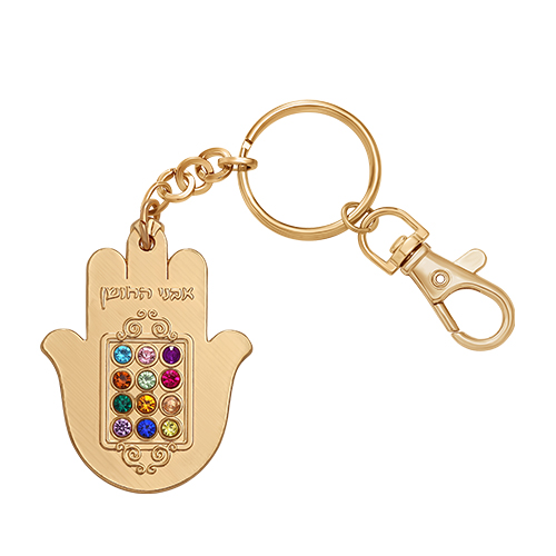 מחזיק מפתחות חמסה "חושן" שיבוץ אבנים 5.5 ס"מ – זהב