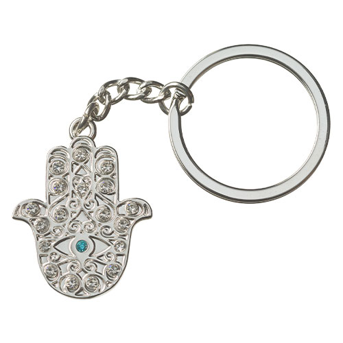 מחזיק מפתחות ניקל עם לולאה חמסה ושיבוץ אבנים