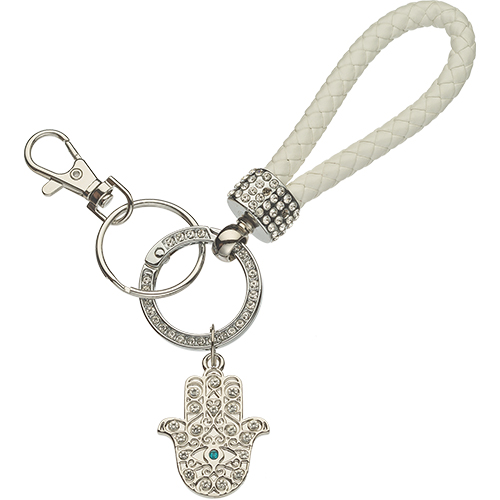 מחזיק מפתחות ניקל עם לולאה חמסה ושיבוץ אבנים