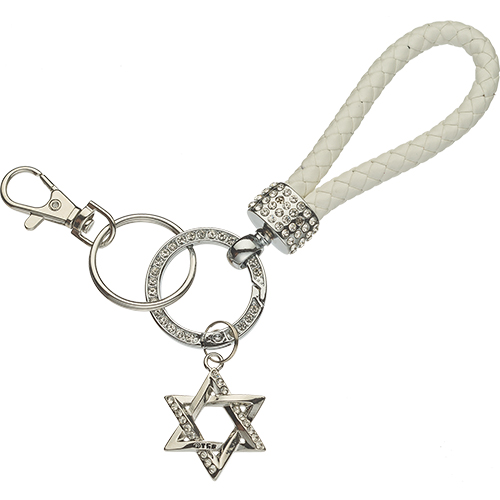 מחזיק מפתחות ניקל עם לולאה מגן דוד ושיבוץ אבנים