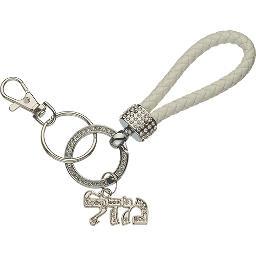 / מחזיק מפתחות ניקל עם לולאה מזל ושיבוץ אבנים