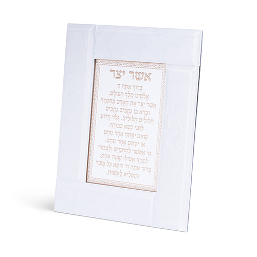 Glass Framed White Blessing 22*18 cm- "Asher Yatzar" Ashkenaz
