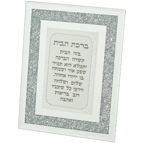 Glass Frame Hebrew Home Blessing 23X18 cm- with Decorative Stones