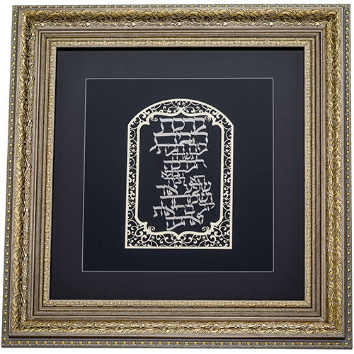 מסגרת ממוסגרת לתלייה עם פלקטה זהב 42×43 ס"מ- מזמור לתודה