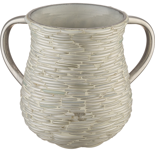 זוג מגבות לבנות "נטילת ידיים" עם שיבוץ אבנים מהודר