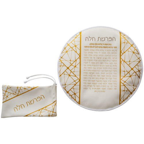 סט הפרשת חלה דמוי עור לבן "אותיות בולטות" זהב 40 ס"מ