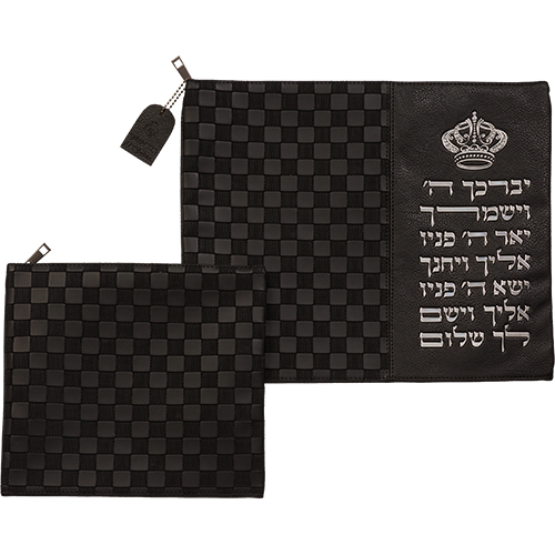 סט טלית תפילין דמוי עור אותיות בולטות "יברכך" כסף 31*38 ס"מ