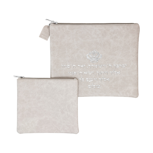 סט טלית תפילין דמוי עור בטון אותיות בולטות "יברכך" כסף 31*38 ס"מ