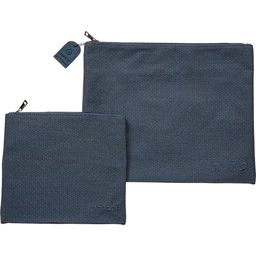 203 סט טלית תפילין דמוי עור עם ריקמה אפור 36*29 ס