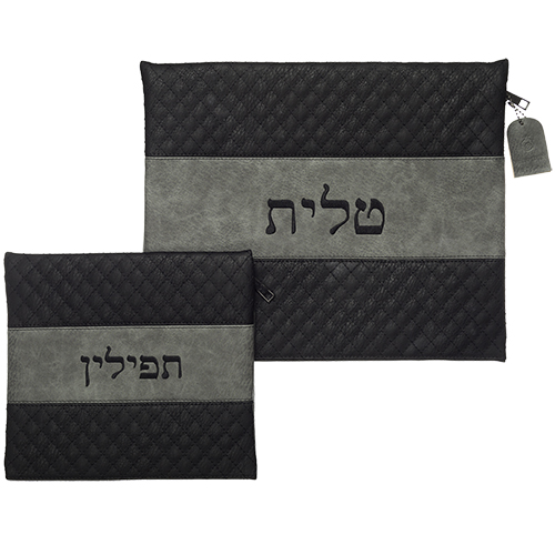 סט טלית תפילין דמוי עור עם ריקמה 36*29 ס"מ