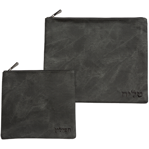 סט טלית תפילין דמוי עור עם ריקמה 36*29 ס"מ