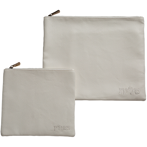 203 תיק מפואר לטלית דמוי עור אפור אותיות בולטות "וי