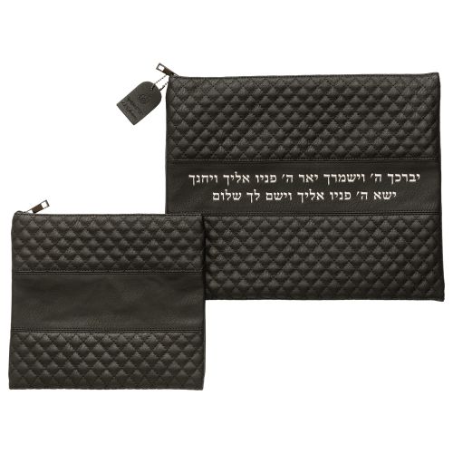 סט טלית תפילין דמוי עור שחור אותיות בולטות "ויב