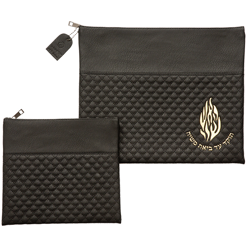 סט טלית תפילין דמוי עור שחור עם הבלטה "האש שלי" 36*29 ס"מ
