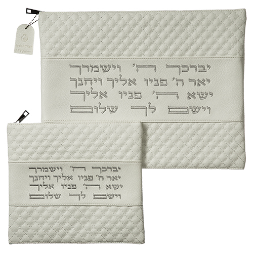 סט טלית ותפילין דמוי עור עם ברכת יברכך 36*29 ס"מ