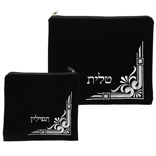 סט טלית תפילין קטיפה כחול כהה עם ריקמה 36*29 ס"