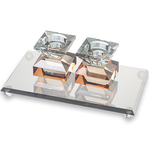 Crystal Tray with Crystal Elegant Candlesticks 7cm