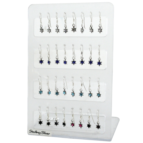 כמות של סט 16 זוגות עגילי כסף מגן דוד עם אבן בצבעים שונים B7145