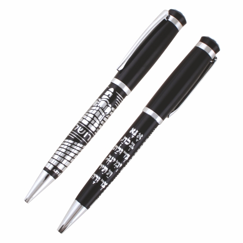 Elegant Black Pen Inscribed with Silver -Anna Be-Koach- with design 13.5 cm- Hebrew מגיע באריזת מתנה