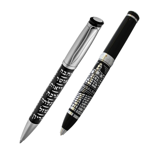 BS Elegant Black Pen with Silver "7 Blessings" 13.5 cm-Hebrew מגיע באריזת מתנה