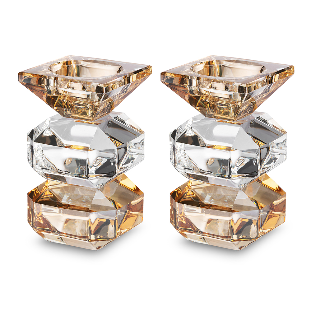 / פמוטים קריסטל זהב ושחור קוביות 12 ס"מ