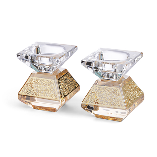 פמוטי קריסטל זהב שקוף עם פלקטה עיטורים 6.5סמ