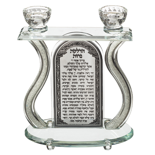 Crystal Candlesticks 25*24 cm with Metal Plaque and Stones