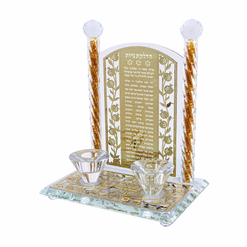 פמוטי קריסטל עם פלקטה הדלקת נרות "רימונים" זהב 25 ס"מ