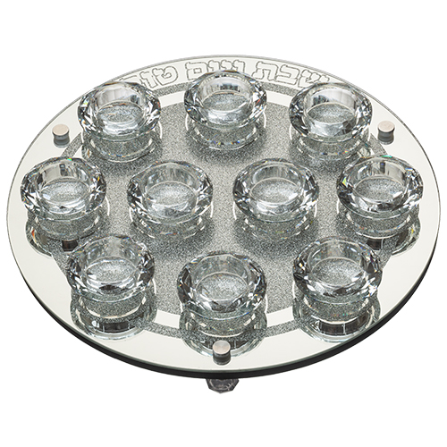 פמוט זכוכית עם 10 פמוטי קריסטל מהודרים 33 ס"מ