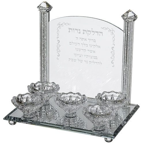 פמוט חמישייה עם עמודים וברכת "הדלקת נרות" 22 ס"מ