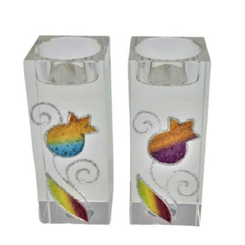פמוטי זכוכית עם מגירה ונצנץ "רימונים" 22×25 ס"מ