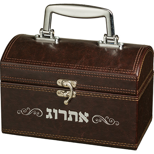 Faux Leather Etrog Box with Handle & Lock 13*19*11 cm – Brown