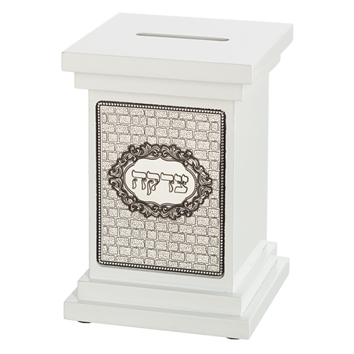 כמות של קופת צדקה עץ פיאנו לבן, מהודרת עם פלקטה "כותל" 14