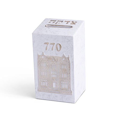 / קופת צדקה פולימר "הבית של הרבי" 14×8 ס"מ לבן