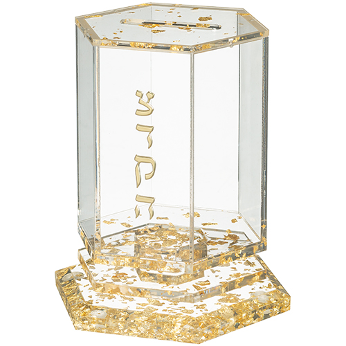 / קופת צדקה פרספקס מהודרת – גוון זהב 12*8 ס"מ
