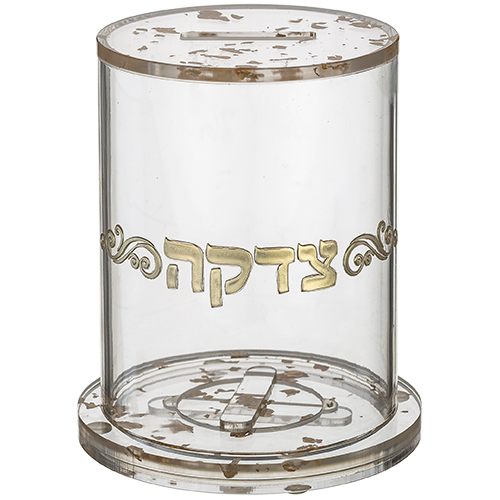 Perspex Tzedakah Box with Gold Glitter 13 cm