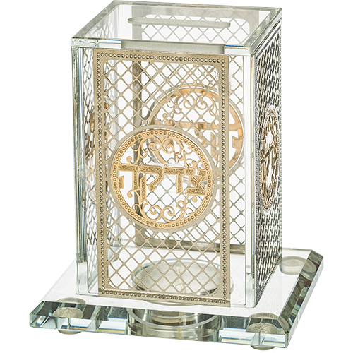 קופת צדקה קריסטל עם פלקטות "עיטורים" 9*12 ס"מ